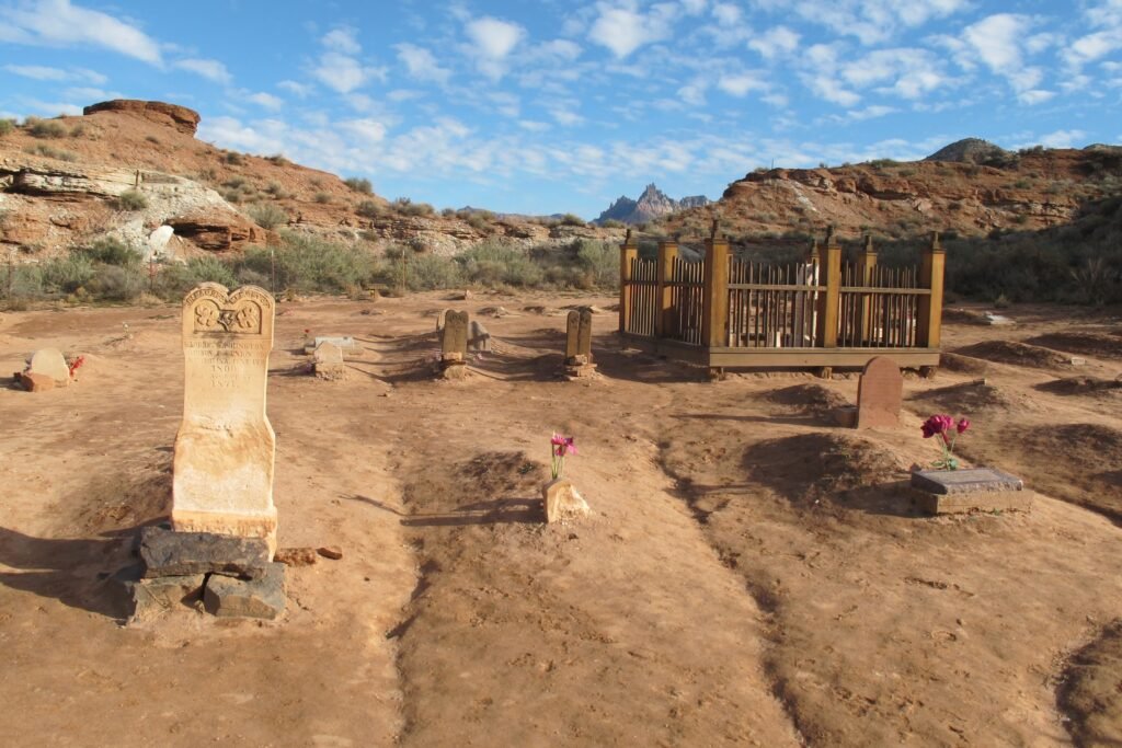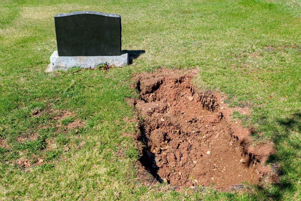 Cova ao lado de um túmulo.